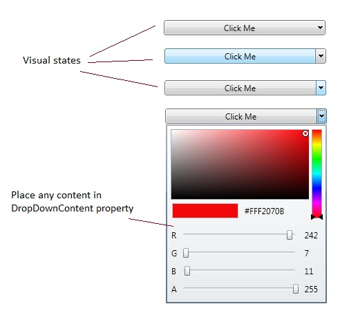 | Click | Raised when the control is clicked (Inherited from DropDownButton) |